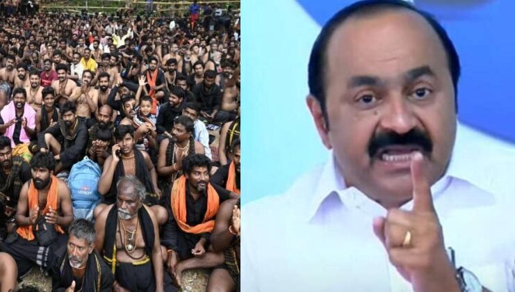 അയ്യപ്പ സംഗമം നടത്തിയത് നന്നായ് എന്നെ ഞാൻ പറയൂ. കാരണം പഴയ കര്യങ്ങൾ എല്ലാം എല്ലാവരും ഓർത്തെടുക്കുന്നുണ്ട്. സ്ത്രീ പ്രവേശന വിഷയത്തിൽ ആചാരം സംരക്ഷിക്കാനാണ് ശ്രമിച്ചത്. സുപ്രീം കോടതിയിൽ കൊടുത്ത പരാതി മാറ്റി നല്കുമോ എന്നും സതീശൻ ചോദിച്ചു.2026 കണ്ട് പേടിച്ചിട്ടാണ് ദേവസ്വത്തിൻ്റെ പ്ലാറ്റിനം ജൂബിലി ആഘോഷിച്ചത്. യോഗിയുടെ സന്ദേശം വായിച്ചപ്പോൾ വാസവൻ പുളകിതനായി. കോൺഗ്രസ് ആയിരുന്നുവെങ്കിൽ എന്താകുമായിരുന്നു പുകിൽ. തത്വമസി എന്ന് പിണറായി പറഞ്ഞത് കേട്ട് ഞെട്ടിയിരിക്കുകയാണ്. കേരളത്തിലെ ജനങ്ങളെ അണ്ടർ എസ്റ്റിമേറ്റ് ചെയ്യരുതെന്നും വി ഡി സതീശൻ വ്യക്തമാക്കി.എൻഎസ്എസിന് ഇഷ്ടമുള്ള രാഷ്ട്രീയ തീരുമാനം എടുക്കാൻ സ്വാതന്ത്ര്യമുണ്ടെന്നും അതിൽ കോൺഗ്രസിന് ആശങ്കയില്ലെന്നും വി.ഡി. സതീശൻ വ്യക്തമാക്കിയിരുന്നു. ശബരിമല വിഷയത്തിൽ കോൺഗ്രസ് അന്നും ഇന്നും ഇന്നും വിശ്വാസികൾക്കും അയ്യപ്പ ഭക്തർക്കും ഒപ്പമാണ്. തങ്ങളുടെ രാഷ്ട്രീയ തീരുമാനങ്ങളിൽ ഒരു ശക്തിക്കും സ്വാധീനം ചെലുത്താനോ മാറ്റം വരുത്താനോ സാധിക്കില്ലെന്നും അദ്ദേഹം പറഞ്ഞു.