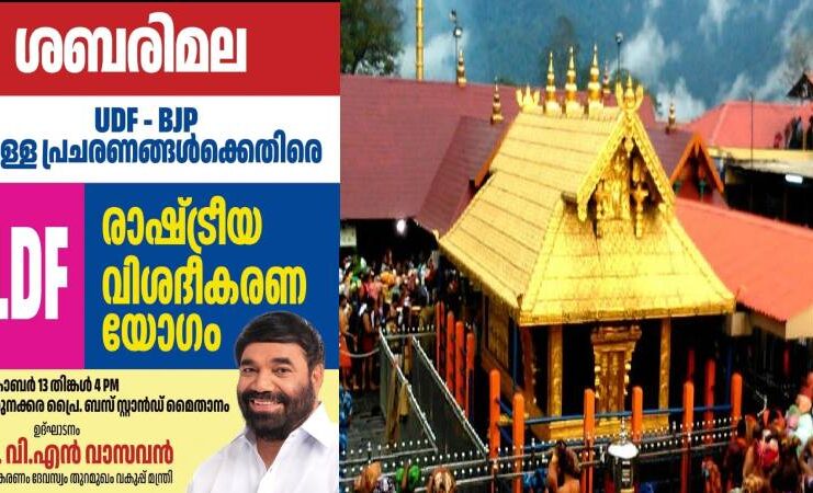 ശബരിമല വിവാദത്തിൽ കോട്ടയത്ത് വിശദീകരണയോഗം നടത്താൻ എൽഡിഎഫ്.എൽഡിഎഫ് ജില്ലാ കമ്മിറ്റിയുടെ നേതൃത്വത്തിൽ ഇന്ന് നടക്കുന്ന പരിപാടിയിൽ ദേവസ്വം വകുപ്പ് മന്ത്രി വി എൻ വാസവൻ പങ്കെടുക്കും.