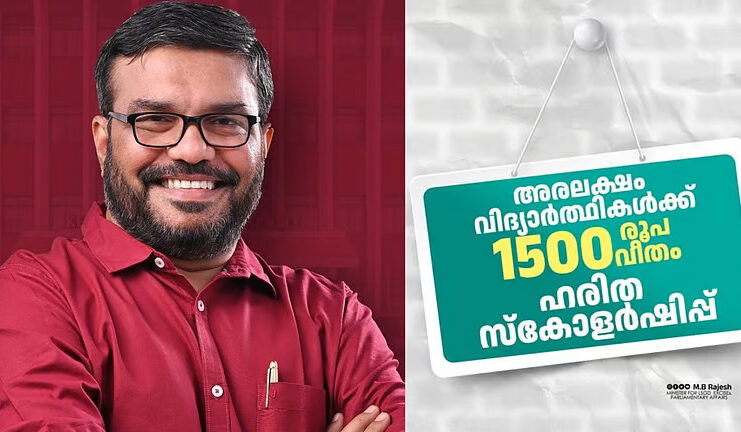 സ്കൂൾ വിദ്യാർഥികൾക്ക് സ്കോളർഷിപ്പുമായി തദ്ദേശ സ്വയംഭരണ വകുപ്പ്. ശുചിത്വവുമായി ബന്ധപ്പെട്ട പ്രവൃത്തികൾ പൂർത്തിയാക്കുന്നവർക്ക് ഹരിത സ്കോളർഷിപ്പ് എന്ന പേരിലാണ് തുക നൽകുക എന്ന് മന്ത്രി എം. ബി. രാജേഷ് അറിയിച്ചു. അരലക്ഷം വിദ്യാർഥികൾക്ക് 1500 രൂപ വീതം നൽകുമെന്നാണ് മന്ത്രി ഫേസ്ബുക്ക് പോസ്റ്റിലൂടെ അറിയിച്ചത്. 6, 7, 8, 9, പ്ലസ് വൺ വിദ്യാർഥികൾക്കാണ് ഈ വർഷം സ്കോളർഷിപ്പ് നൽകുകയെന്നും മന്ത്രി വ്യക്തമാക്കി.