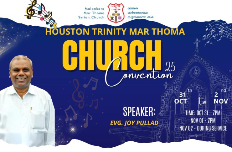 ഹൂസ്റ്റൺ ട്രിനിറ്റി മാർത്തോമാ ഇടവകയുടെ ആഭിമുഖ്യത്തിൽ ഈ വർഷത്തെ കൺവെൻഷൻ ഒക്ടോബർ 31,നവംബർ 1,2 (വെള്ളി, ശനി,ഞായർ) തീയതികളിൽ നടത്തപ്പെടും. ഞായറാഴ്ച രാവിലെയുള്ള ആരാധന മദ്ധ്യേ കൺവെൻഷന്റെ സമാപന പ്രസംഗം നടത്തും.
