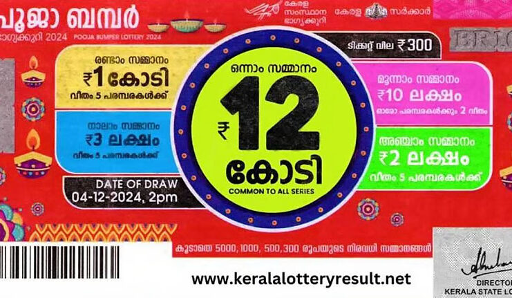 കേരള സംസ്ഥാന ഭാഗ്യക്കുറി വകുപ്പിന്റെ ഈ വർഷത്തെ പൂജ ബമ്പർ ഭാഗ്യക്കുറിയുടെ വിജയികളെ പ്രഖ്യാപിച്ചു. 12 കോടി രൂപയുടെ ഒന്നാം സമ്മാനം JD 545542 എന്ന നമ്പറിനാണ് ലഭിച്ചത്. പാലക്കാട് വിൽപ്പന നടത്തിയ ടിക്കറ്റിനാണ് ഒന്നാം സമ്മാനം അടിച്ചത്. എസ്. സുരേഷ് എന്ന ഏജൻ്റ് വിറ്റ ടിക്കറ്റിനാണ് പൂജാ ബംപർ അടിച്ചത്.