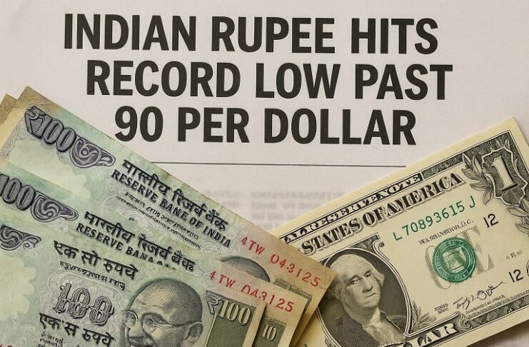ഡോളറിനെതിരെ റെക്കോർഡ് തകർച്ച നേരിട്ട് രൂപ. ചരിത്രത്തിലാദ്യമായി ഇന്ത്യൻ രൂപയുടെ മൂല്യം 90 കടന്നു. ഇന്ന് വ്യപാരം ആരംഭിച്ചപ്പോൾ യുഎസ് ഡോളറിനെതിരെ രൂപയുടെ മൂല്യം 9 പൈസ ഇടിഞ്ഞ് 90.05 എന്ന റെക്കോർഡ് താഴ്ന്ന നിലയിലെത്തി. ലഭ്യമായ കണക്കുകൾ പ്രകാരം ചൊവ്വാഴ്ച വിദേശ സ്ഥാപന നിക്ഷേപകർ 3,642.30 കോടി രൂപയുടെ ഓഹരികൾ വിറ്റു.