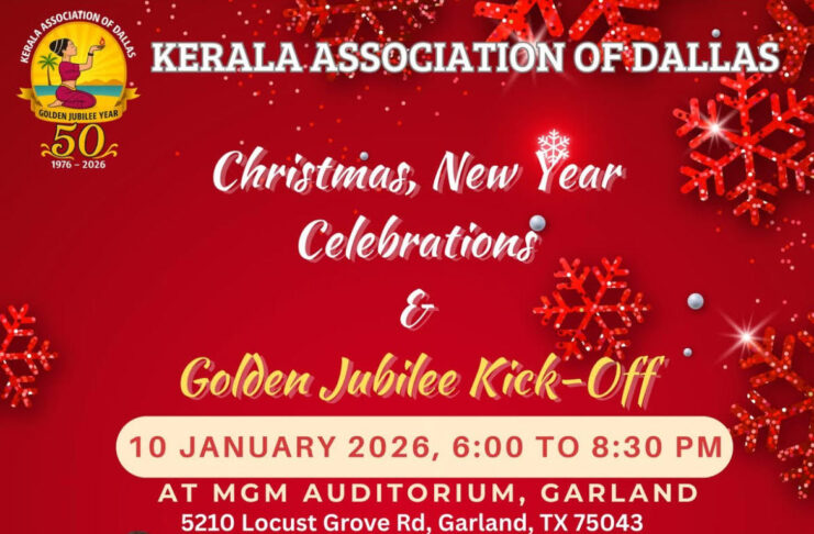 കേരള അസോസിയേഷൻ ഓഫ് ഡാളസിന്റെ 50-ാം വാർഷികാഘോഷങ്ങൾക്കും ക്രിസ്മസ്-പുതുവത്സര പരിപാടികൾക്കും ജനുവരി 10-ന് തുടക്കമാകും. ഗാർലൻഡിലെ എം.ജി.എം ഓഡിറ്റോറിയത്തിൽ വെച്ച് വൈകുന്നേരം 6 മണി മുതൽ 8:30 വരെയാണ് ചടങ്ങുകൾ സംഘടിപ്പിച്ചിരിക്കുന്നത്.ചടങ്ങിൽ പുതിയതായി തിരഞ്ഞെടുക്കപ്പെട്ട പ്രസിഡന്റ് ഷിജു അബ്രഹാമിന്റെ നേത്ര്വത്വത്തിലുള്ള പുതിയ ഭരണസമിതി ചുമതലയേൽക്കും
