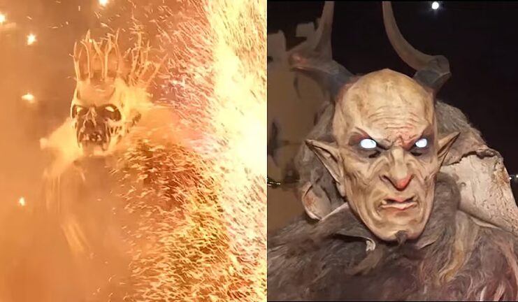 തെരുവോരങ്ങളിൽ പരുക്കൻ മാസ്കിട്ട മുഖങ്ങൾ. ഭൂതവും പ്രേതവും പിശാചുക്കളുമെല്ലാം ഇക്കൂട്ടത്തിലുണ്ട്. നീണ്ട നഖങ്ങളും തിളങ്ങുന്ന കണ്ണുകളുമുള്ള രാക്ഷസന്മാർ. ഹാലോവീൻ പ്രേതങ്ങളെക്കാൾ കുറച്ചുകൂടി ഭീകരരാണ് ഇവർ. കയ്യിൽ തീപ്പന്തമോ തീക്കനലോ ഉണ്ടാവും. രാക്ഷസ മാസ്കുകളും വേഷവിധാനങ്ങളും ഓസ്ട്രിയൻ നിർമിതമാണ്. വസ്ത്രങ്ങൾക്ക് 30 കിലോ ഭാരം വരും. കട്ടിയുള്ള ജാക്കറ്റും മഫ്ളറും ധരിച്ച് വഴിയോരങ്ങളിൽ കാത്തുനിൽക്കുന്ന കുട്ടികൾ ഉൾപ്പെടെയുള്ള കാഴ്ചക്കാരെ കയ്യിലെടുക്കാൻ തീകൊണ്ടുള്ള അഭ്യാസ പ്രകടനവും നൃത്തവുമാണ് ആഘോഷത്തിലെ പ്രധാന ഹൈലൈറ്റ്.