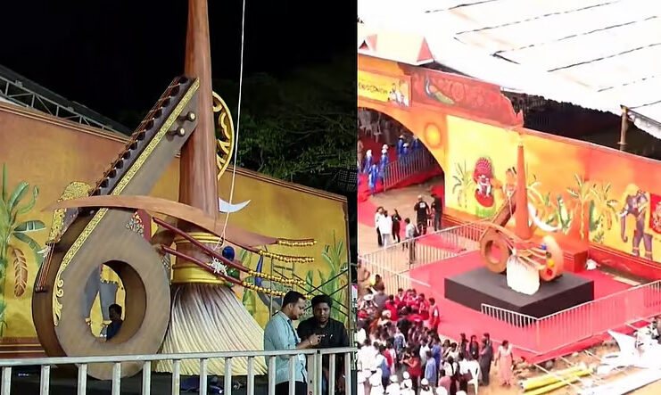 കാലടി സംസ്കൃത സര്വകലാശാലയിലെ അധ്യാപകന് കൂടിയായ ഇരിങ്ങാലക്കുട സ്വദേശി യദു കൃഷ്ണനാണ് കൊടിമരം നിര്മിച്ചത്. കലോത്സവം തുടങ്ങും മുന്പേ ആരാധകരെ സമ്പാദിച്ചു കഴിഞ്ഞു ഈ കൊടിമരം. നിരവധിപ്പേരാണ് ഇവിടെ ഫോട്ടോകള് പകര്ത്താന് എത്തുന്നത്.