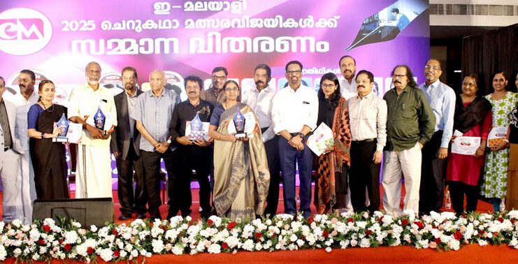 മലയാള സാഹിത്യത്തിലെ സര്ഗ പ്രതിഭകളും എഴുത്തിനെ ഒരു തപസ്യ പോലെ നെഞ്ചേറ്റിയവരും അനുവാചകരും സംഗമിച്ച വേദിയില് അമേരിക്കന് മലയാളികളുടെ ജനപ്രിയ ഓണ്ലൈന് പോര്ട്ടലായ ഇ മലയാളി നടത്തിയ 2025-ലെ ചെറുകഥാ മത്സര വിജയികള്ക്കുള്ള പുരസ്കാരങ്ങള് സമ്മാനിക്കപ്പെട്ടു. കൊച്ചി ഗോകുലം പാര്ക്ക് കണ്വന്ഷന് സെന്ററില് നടന്ന ലളിതമായ ചടങ്ങില് ലോകോത്തര ഓങ്കോളജിസ്റ്റും അമേരിക്കയില് മലയാള ഭാഷയുടെ അംബാസിഡറുമായ ഡോ. എം.വി പിള്ളയുടെയും മലയാള സാഹിത്യത്തിന് വിലപ്പെട്ട സംഭാവനകള് നല്കിയ പ്രമുഖ ചെറുകഥാകൃത്തും നോവലിസ്റ്റുമായ സക്കറിയയുടെയും സാന്നിധ്യം അനുഗ്രഹീതമായി.