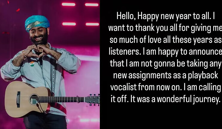 ‘എല്ലാവർക്കും പുതുവത്സരാശംസകൾ. ഇത്രയും വർഷങ്ങൾ എന്നെ സ്നേഹിച്ച എൻ്റെ ശ്രോതാക്കൾക്ക് നന്ദി. ഒരു പിന്നണി ഗായകനെന്ന നിലയിൽ ഞാൻ പുതിയ പാട്ടുകൾ ഒന്നും ഇനി പാടുന്നില്ല. ഞാൻ പിന്മാറുകയാണ്. ഇതൊരു മനോഹരമായ യാത്രയായിരുന്നു’എന്നാണ് അരിജിത് സിംഗ് ഇൻസ്റ്റഗ്രാമിൽ കുറിച്ചത്.