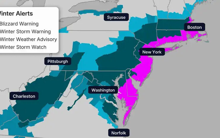 2017-ന് ശേഷം ആദ്യമായി ന്യൂയോർക്ക് സിറ്റിയിലെ അഞ്ച് ബോറോകളിലും ‘ബ്ലിസാർഡ്’ (അതിശക്തമായ മഞ്ഞുകാറ്റ്) മുന്നറിയിപ്പ് നൽകി. ബോസ്റ്റണിലും സമാനമായ ജാഗ്രതാ നിർദ്ദേശമുണ്ട്.
