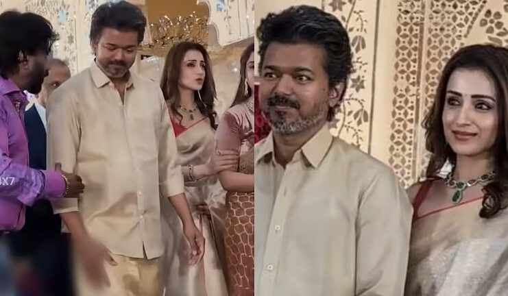 തമിഴ് സൂപ്പർ താരവും തമിഴക വെട്രി കഴകം അധ്യക്ഷനുമായ വിജയ്യും നടി തൃഷ കൃഷ്ണനും ഒരു വിവാഹ ചടങ്ങിൽ ഒന്നിച്ചെത്തിയ വീഡിയോ സോഷ്യൽ മീഡിയയിൽ വൈറലാകുകയാണ്. വിജയ്യുടെ ഭാര്യ സംഗീത സ്വർണലിംഗം വിവാഹമോചന ഹർജി നൽകിയെന്ന വാർത്തകൾ പുറത്തുവന്നതിന് പിന്നാലെയാണ് ഇരുവരും പൊതുവേദിയിൽ പ്രത്യക്ഷപ്പെട്ടത് എന്നത് ശ്രദ്ധേയമാണ്. വിജയ്ക്ക് ഒരു നടിയുമായി വിവാഹേതിര ബന്ധമുണ്ടെന്ന് ആരോപിച്ചാണ് സംഗീത വിവാഹമോചനം ആവശ്യപ്പെട്ടത്. ഇതിനുപിന്നാലെ തൃഷ വലിയ തോതിൽ സൈബർ ആക്രമണം നേരിട്ടിരുന്നു.