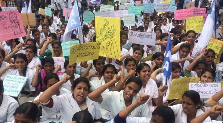 അതേസമയം, കോഴിക്കോട് മെഡിക്കൽ കോളജ് അത്യാഹിത വിഭാഗത്തിൽ ചികിത്സ തേടിയെത്തുന്നവരുടെ എണ്ണം ഇരട്ടിയായി. ജനറൽ മെഡിസിൻ വിഭാഗത്തിലാണ് കൂടുതലും രോഗികളെത്തുന്നത്. ഇതോടെ മെഡിക്കൽ കോളജിലെ ജീവനക്കാരുടെ ജോലിഭാരവും ഇരട്ടിയാകുന്ന രീതിയിലേക്ക് സമരം മാറുകയാണ്.ആശുപത്രി സേവനം മുടങ്ങുന്നില്ലെന്ന് സർക്കാർ ഉറപ്പ് വരുത്തണമെന്നാണ് ഹൈക്കോടതിയുടെ നിർദേശം. ആശുപത്രികൾക്ക് പൊലീസ് സംരക്ഷണം ഉറപ്പ് വരുത്തണമെന്നും ഹൈക്കോടതി സർക്കാരിനോട് നിർദേശിച്ചിട്ടുണ്ട്.