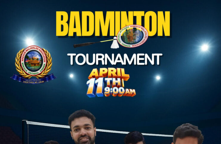 വിൻസർ മലയാളി അസോസിയേഷന്റെ ആഭിമുഖ്യത്തിൽ ബാഡ്മിന്റൺ ഗ്രാൻഡ് ടൂർണമെന്റ് നടത്തപ്പെടുന്നു. ഏപ്രിൽ 11 ശനിയാഴ്ച്ച റോസ് സിറ്റി ഇസ്ലാമിക് സ്പോർട്സ് സെന്ററിൽ എംപി ഹാർബ് ഗിൽ ടൂർണമെന്റ് ഉത്ഘാടനം ചെയ്യും. ഇത് ഒരു മത്സരം മാത്രമല്ല മറിച്ച് പ്രവിശ്യയിലെ വിവിധ നഗരങ്ങളിൽ നിന്ന് മലയാളികൾ ഒരുമിച്ച് കൂടി അവരുടെ ടീമുകൾക്ക് ആവേശം പകരുന്ന ഐക്യത്തിന്റെയും സന്തോഷത്തിന്റേയും മഹാസംഗമമാണ്.