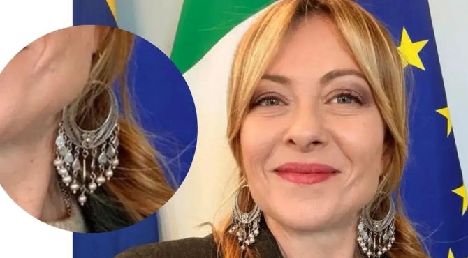 ശൈത്യകാല ഫാഷൻ വസ്ത്രം- ചാർക്കോളും ബീജും കോമ്പോ, നല്ല ഹെയർ സ്റ്റൈൽ ഇതൊക്കെയുണ്ടെങ്കിലും കാണുന്നയാളുടെ നോട്ടം പോകുന്നത് മെലോണിയുടെ കാതുകളിലേക്കാണ്. വെസ്റ്റേൺ ഡ്രസിനൊപ്പം ചേർച്ച തോന്നാത്ത തരത്തിൽ ഒരു ഫ്യൂഷൻ പോലെ നമ്മുടെ ഇന്ത്യൻ ജുംക. സാധാരണ സ്റ്റൈലിസ്റ്റുകളൊന്നും ബ്ലേസിയറിനൊപ്പം ജുംക നിർദേശിക്കാറില്ല. എന്നാൽ മെലോണിയുടെ സെൽഫിയിലെ ജുംക നല്ല ഭംഗിയെന്ന് നെറ്റിസൺസ്. കുട്ടിക്കുട്ടി ഗുംഗ്രുകൾ നിറഞ്ഞ ആ ജുംകകളിൽ നിന്ന് ഇന്റർനെറ്റ് ലോകം കണ്ണെടുക്കാതിരുന്നപ്പോൾ ചിത്രമങ്ങ് വൈറലായി. പിന്നെ കമന്റുകളായി മീമുകളായി.
